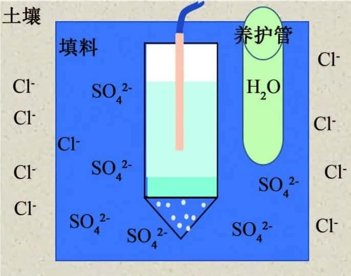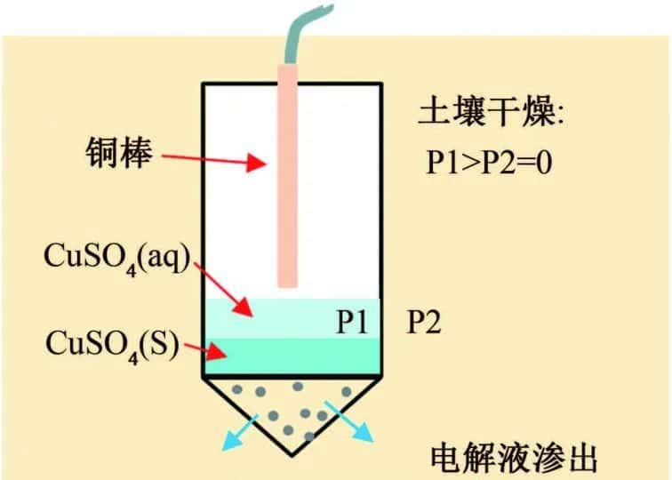 (2) 电极溶液渗出:当电极周围土壤干燥或温度变化较大时,电极内的硫酸铜溶液会渗出电极,导致电极内CuSO4溶液不断减少,当电极内铜棒露出过多或与电解质无法接触时,长效参比电极电位会发生显著改变,这在西部干旱地区更加明显。